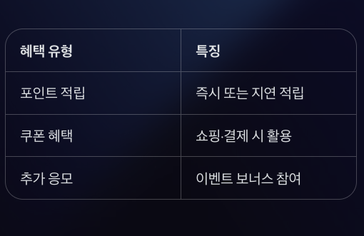 | 쿠폰 혜택 | 쇼핑이나 결제 시 활용 가능 |