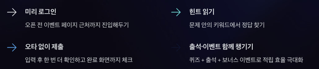 A. 처음에는 참여 흐름만 익히고, 이후 정답 확인 속도와 출석 이벤트를 함께 챙기면 훨씬 수월하게 적립할 수 있어요.