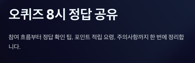 오퀴즈 8시 정답 공유를 찾는 분들은 보통 저녁 시간대에 열리는 퀴즈 이벤트를 빠르게 참여하고 싶어 해요. 오퀴즈는 짧은 시간 안에 문제를 보고 정답을 맞히면 포인트나 리워드를 받을 수 있는 형태라 부담 없이 참여하기 좋아요. 특히 8시 타임은 많은 이용자가 몰리는 시간대라서 정답 확인 속도와 참여 타이밍이 중요해집니다.