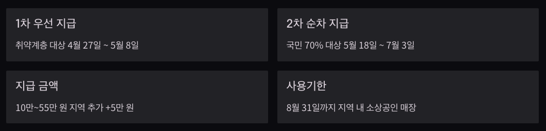 오프라인 신청도 가능해요. 지역사랑상품권이나 선불카드는 주소지 관할 읍면동 주민센터에서 신청할 수 있고, 신용·체크카드는 제휴 은행 영업점을 방문하면 됩니다. 고령자나 장애인 등 거동이 불편한 분들은 일부 지역에서 찾아가는 신청 서비스도 운영될 수 있어서 직접 방문이 어려운 경우 참고하면 좋아요.