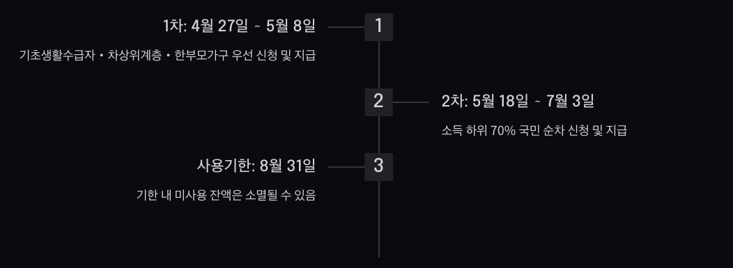 정부 고유가 피해지원금 신청방법 및 지급기간은 대상자에 따라 1차와 2차로 나뉘어 진행돼요. 기초생활수급자·차상위계층·한부모가구는 먼저 신청할 수 있고, 이후 국민 70%를 대상으로 순차 지급이 이어지는 구조라서 신청 시기와 방식, 사용기한까지 함께 확인하는 것이 중요합니다.